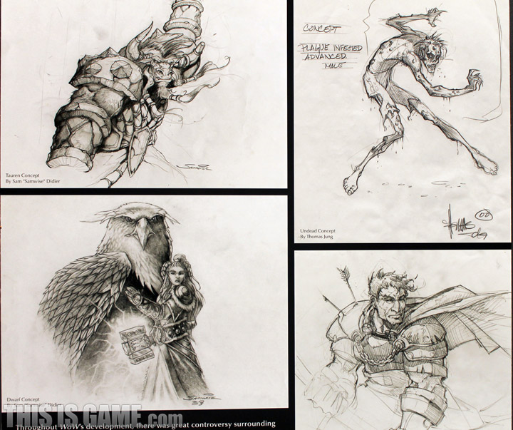 이제부터는 <월드 오브 워크래프트>의 원화들입니다. 첫 타자는 각 종족의 초기 콘셉트 아트입니다. 첫번째 그림 왼쪽 하단, 드워프답지 않게(?) 참하게 묘사된 여성 드워프 그리폰 라이더의 원화가 인상적이지 않나요?