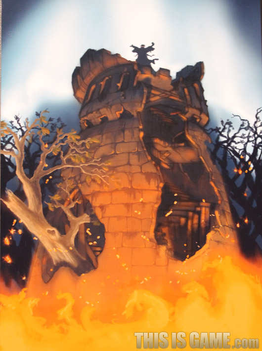 혹시 <월드 오브 워크래프트> 오리지널 시절의 시네마틱 오프닝을 기억하시나요? 거기서 인간 마법사가 탑 위에서 불덩이를 던지던 모습을 연출할 때 쓰인 원화입니다.