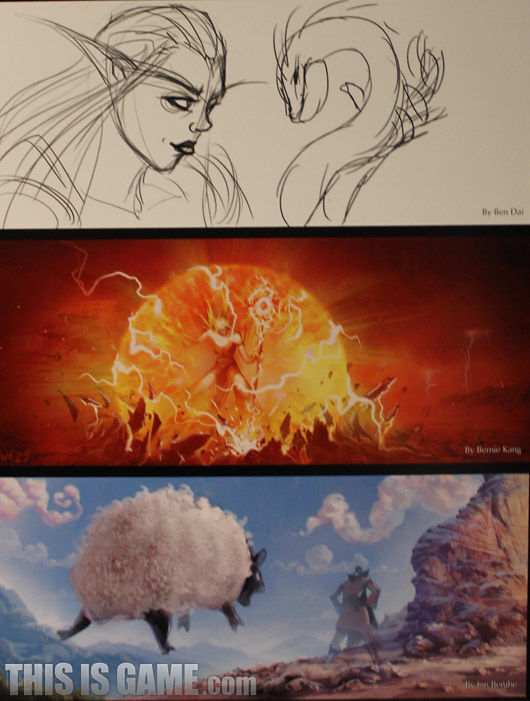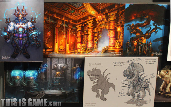 <판다리아의 안개> 콘셉트 아트. <판다리아의 안개> 보스 중 손꼽히는 난이도를 가졌다고 평가 받는 천둥왕 ‘레이 션’의 모습이 보이네요. (왼쪽 상단)