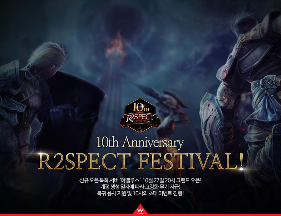 - 10/27, 웹젠 <R2> ‘아벨루스’, 불법프로그램 사용자 차단되는 오픈형 특화 서버 오픈