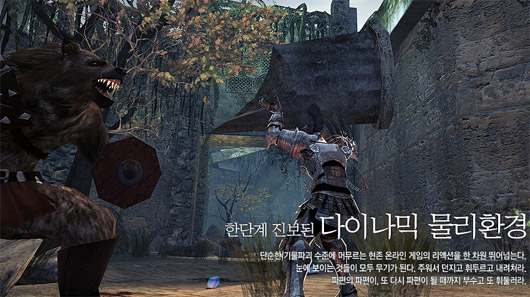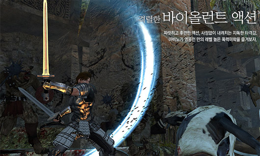 <마비노기 영웅전>은 이름에만 '마비노기'가 붙었을뿐, 실제 게임 플레이는 거의 성인용 액션게임처럼 진행된다. 영상에서도 거친 액션장면과 잔혹한 혈흔 등이 여과없이 보여진다.