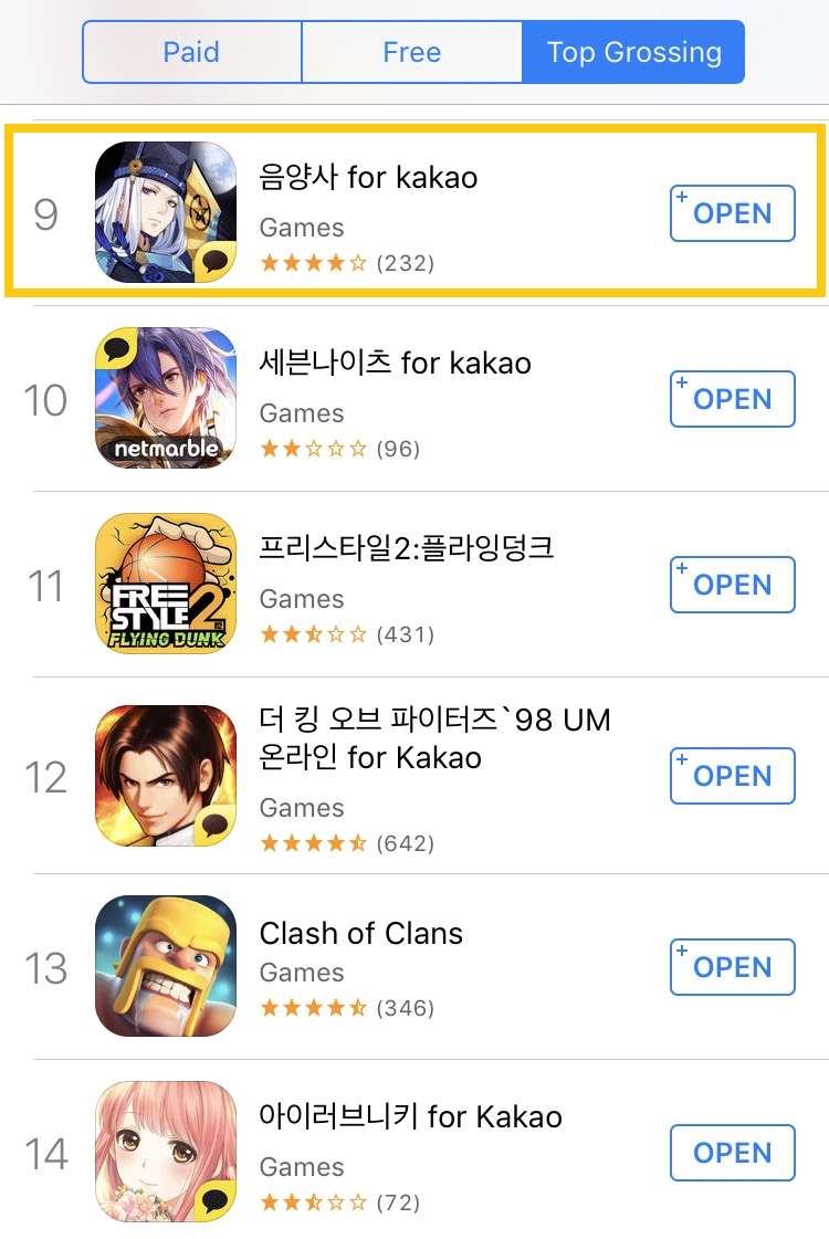 1일 오전 11시 서비스를 시작한 <음양사>는, 불과 반나절 동안 40만명의 이용자들이 몰리며 단숨에 애플 앱스토어 다운로드 1위, 매출 9위(*당일 23시 기준/총 12시간 서비스)에 올라서는 등 쾌조의 출발을 보였다.