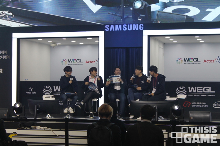 '엔터테인먼트로써의 e스포츠', '모두가 즐길 수 있는 e스포츠'를 추구하는 WeGL의 첫 걸음은 어땠을까? WeGL 지스타 부스의 풍경을 담았다. / 디스이즈게임 장이슬 기자