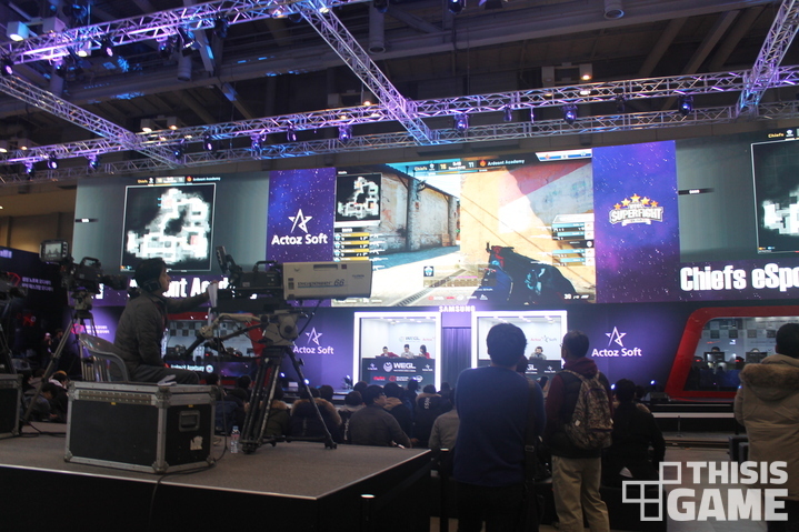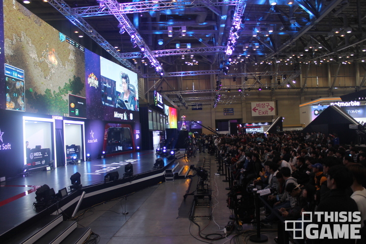 다른 부스가 '체험도 하고 보기도 하는' 부차적인 e스포츠를 메인에 뒀다면