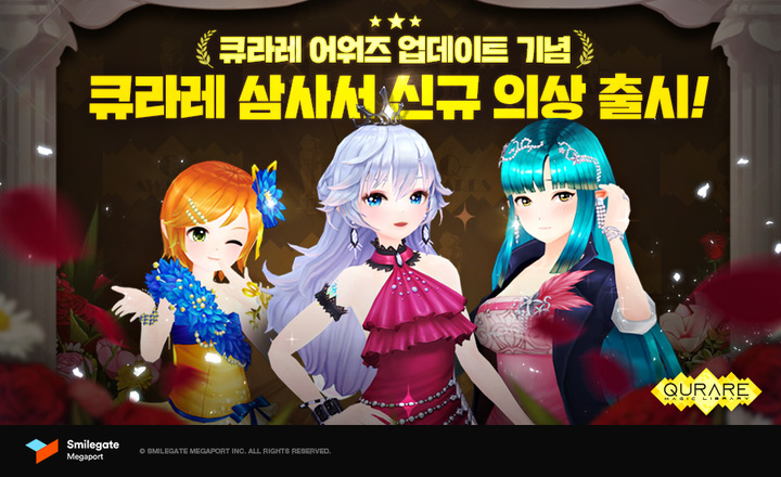 2017년을 마무리하는 시상식을 컨셉으로 한 이번 업데이트에서는, <큐라레>를 대표하는 3사서의 신규 의상을 비롯해 ‘파티의 에리스’, ‘파티의 장자’등 고품질의 신규 카드 일러스트 25종이 추가됐다. 또한 유저 편의를 높이기 위해 레이드 콘텐츠인 ‘유한차원’에 빠른 탐색 기능 추가 및 보유 아이템의 골드 판매 기능도 새롭게 선보였다.