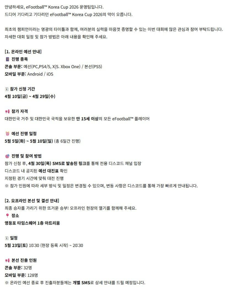 본선이 열리는 장소는 영등포 타임스퀘어 아트리움인데 평소에도 축구 관련 행사가 자주 열리는 곳이라 유저들한테는 익숙한 장소일지도 모르겠습니다