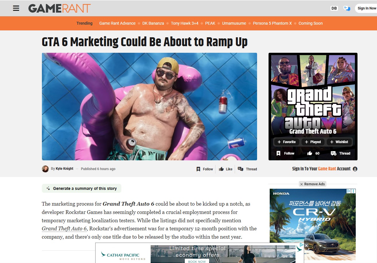 락스타에서 GTA6 마케팅 현지화 매니저 뽑았다는 뉴스가 나왔네요.