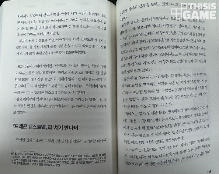 누구보다 더 깊은 당사자성을 지니는 저자는 때로는 회고를, 때로는 주석을, 때로는 공식 자료와 당대의 세평(世評) 등을 조합하며 이야기를 능수능란하게 이끌어 나간다. 세가가 내린 급진적인 결론들에 대해 (현직자 입장의 저자는) 다소 모호하게 이야기하고 넘어갈 때도 있지만, 큰 맥락을 짚는 데 어려울 정도는 아니다. 세가가 이 책의 출간을 허락한 것을 보면, 생각보다 이 회사가 그렇게 닫힌 회사는 아니라는 생각도 든다.