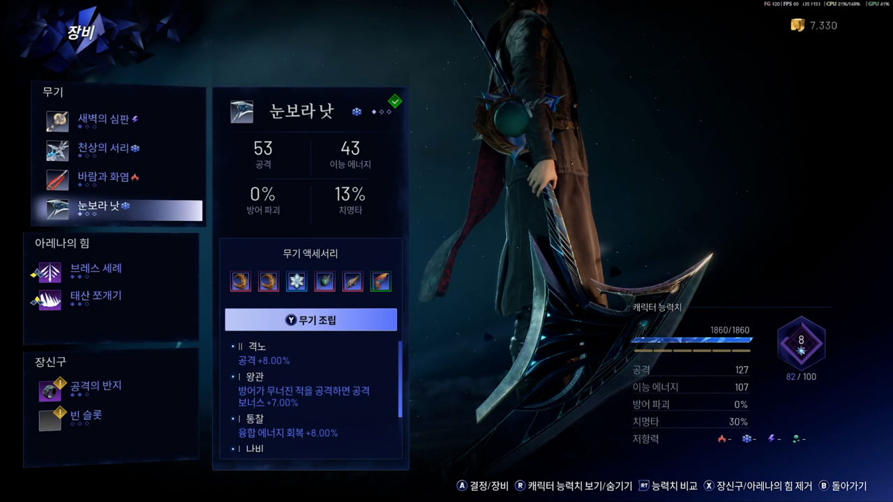 특히 순차적으로 얻게 되는 네 가지 무기인 검, 대검, 폴 블레이드, 낫은 서로 다른 콤보와 공격 스타일로 다양하게 활용해 보고 싶게끔 합니다. 무기마다 고유한 업그레이드로 콤보를 확장해 나가고 액세서리를 부착해 커스텀 강화를 할 수도 있습니다. 화염, 얼음, 뇌전 등의 상태 이상 효과도 있어 각각의 시너지를 고려해 무기를 바꿔가며 사용할 수도 있죠.