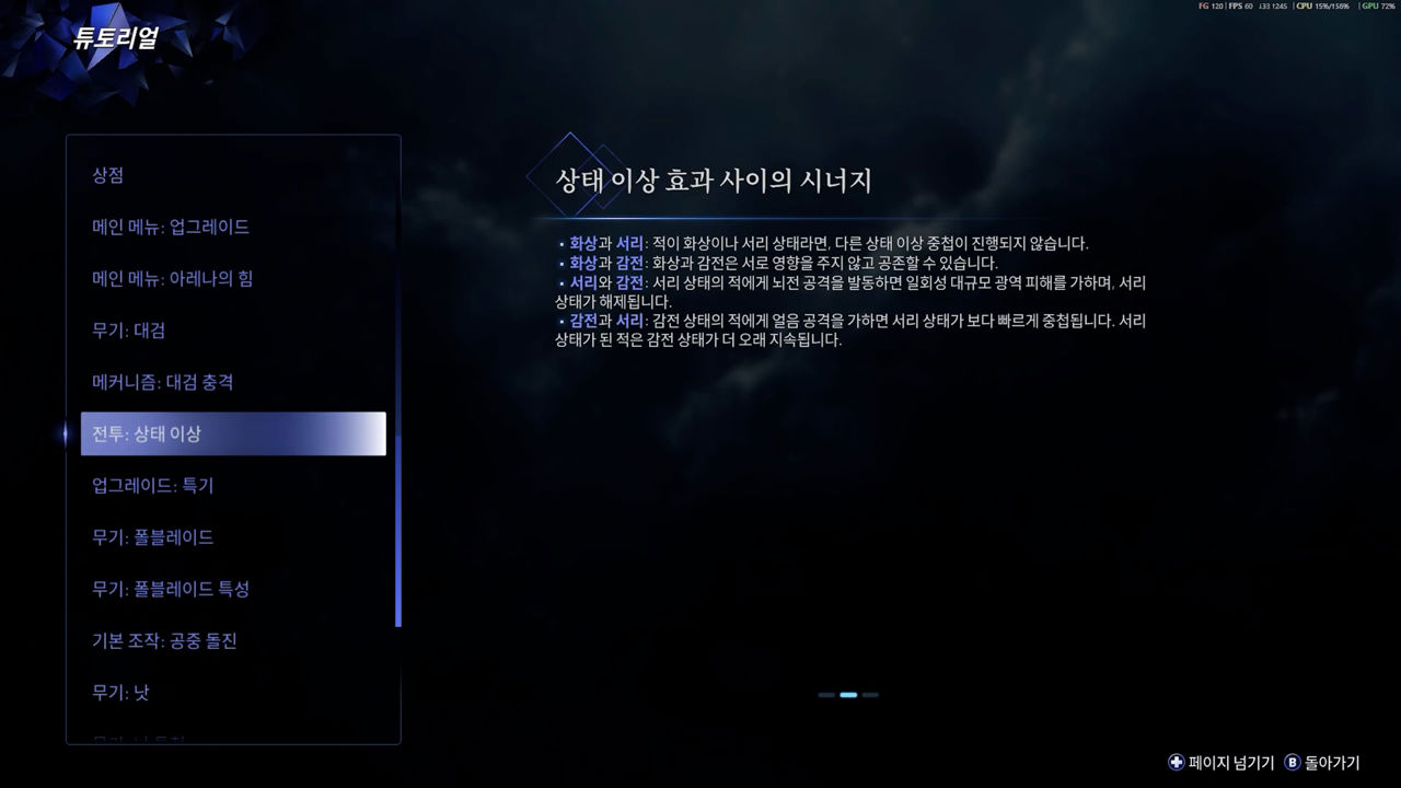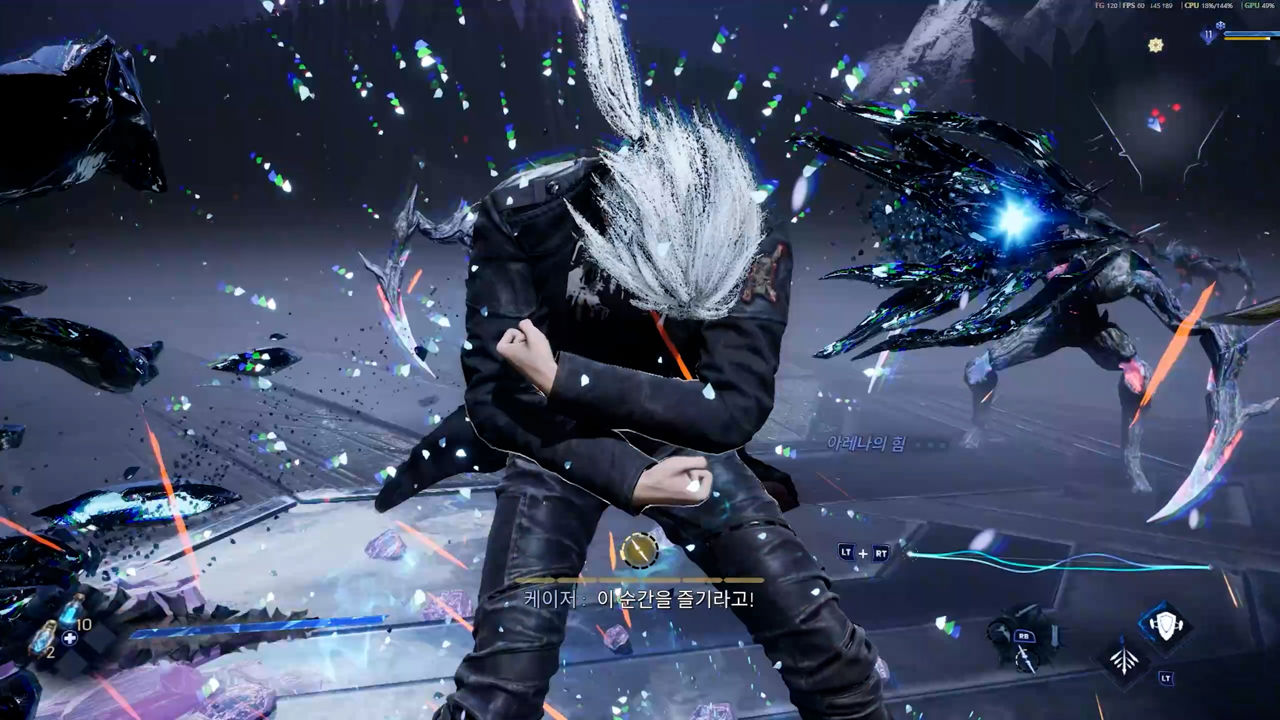 시각 효과와 기본 시스템만 보면 이 게임이 얼마나 야심찬 액션을 추구하는지 어렵지 않게 알 수 있습니다. 하지만 실제 플레이 감각은 그 이상을 채워내진 못합니다. 화려한 연출에 비해 죄다 비슷한 사운드로 타격의 재미를 느끼기 어렵고, 바로 반응해야 하는 알림인데 다른 이펙트에 묻혀 시인성이 떨어집니다. 이론상 재밌어 보이는 상태 이상도 누적 현황이나 시너지의 발동 상태를 인지하기 어려워 활용도가 매우 낮고요.