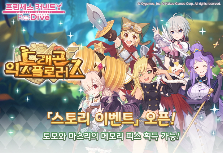 캐릭터 업데이트와 함께, <프린세스 커넥트! 리:다이브>에서는 스토리 이벤트 ‘드래곤 익스플로러즈’가 오픈되었다. 이용자들은 길드 ‘왕궁기사단’의 ‘토모’와 ‘마츠리’를 비롯해 새롭게 등장한 길드 ‘드래곤즈 네스트’의 ‘카야’, ‘이노리’, ‘호마레’를 중심으로 한 특별한 스토리를 감상할 수 있다.