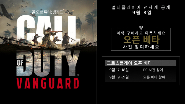 현재 진행 중인 <콜 오브 듀티: 뱅가드> 예약 구매 시, 오픈 베타 사전 참여는 물론 <블랙 옵스 콜드 워> 및 <워존>에서 사용할 수 있는 걸작 무기 도안 등 여러 특전이 제공된다. <콜 오브 듀티: 뱅가드> 멀티플레이어 및 베타 테스트에 대한 자세한 정보는 포스트에서 확인할 수 있다.