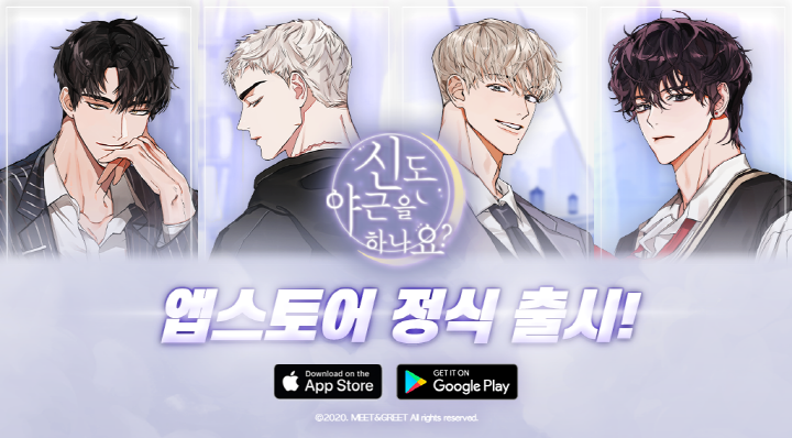 밋앤그릿의 <신도 야근을 하나요?>는 평범한 직장인 주인공이 어느 날 신이 되어 겪게 되는 신비한 모험담과 매력적인 4명의 남자 캐릭터와의 로맨스를 그린 비주얼 노벨 기반의 연애 시뮬레이션 게임이다.