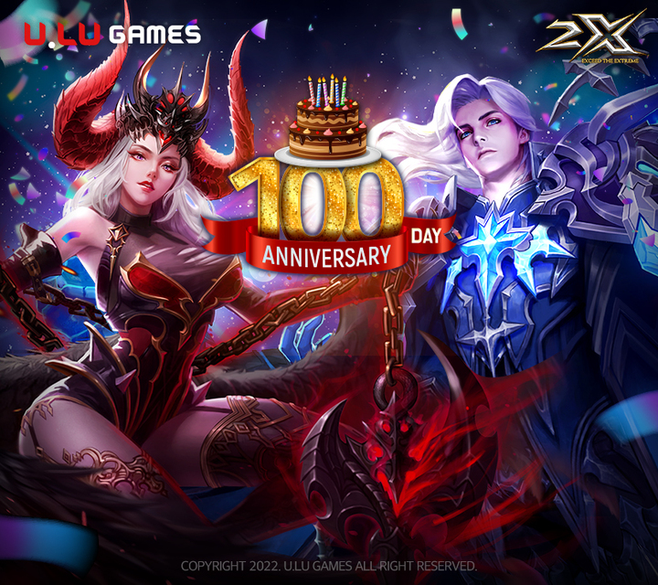 이번 100일 기념 축제는 콘텐츠 업데이트와 다양한 이벤트로 구성되어 있다. 먼저 ‘100일 축하 이벤트’로 손글씨, 동영상, 그림 등 각자의 방식대로 <2X> 100일을 축하하면 참여자 전원 금열쇠 10개, 귀속 금화 300개, 각성 정혼 5개, 7급 보석 선택팩 1개를 지급하고 추첨을 통해 50명에게 스타벅스 기프티콘을 지급한다.