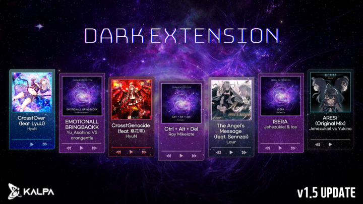 이와 함께 국내외 유명 아티스트들이 참여한 7곡으로 구성된 '다크 익스텐션' 패키지도 출시되었다. 이중 EZ2 시리즈에서 큰 인기를 끌었던 Roy Mikelate의 ‘Ctrl + Alt + Del’, 리듬게이머들 사이에서 유명한 크로스 시리즈의 작곡가 Hyun의 ‘크로스†Over’가 수록되어 눈길을 끈다.