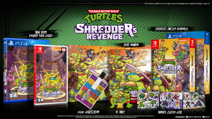 에이치투 인터렉티브는 트리뷰트 게임즈가 개발하고 닷에뮤가 퍼블리싱하는 액션 게임 <돌연변이 닌자 거북이: 슈레더의 복수> 한국어판 패키지를 PS4 및 닌텐도 스위치로 오는 8월 25일 정식 출시할 예정이며, 오는 8일부터 예약 판매를 시작한다고 밝혔다.