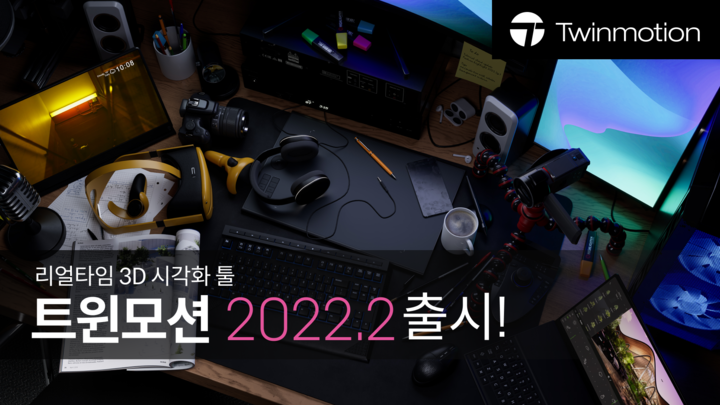 이번 2022.2 출시를 기점으로 트윈모션은 건축, 도시 계획, 조경뿐만 아니라 제품, 운송 및 패션 등의 산업에 이르기까지 누구나 고퀄리티 이미지, 파노라마, 표준 또는 360도 VR 영상 및 인터랙티브 프레젠테이션을 빠르고 쉽게 제작할 수 있는 리얼타임 시각화 툴로 진화되었다.