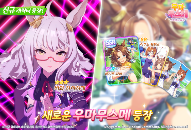 카카오게임즈는 오늘(13일), 사이게임즈가 개발한 모바일 게임 <우마무스메 프리티 더비>에 신규 ‘육성 우마무스메‘ ‘비와 하야히데’ 및 ‘서포트 카드’ 4종을 공개하는 콘텐츠 업데이트를 실시했다.
