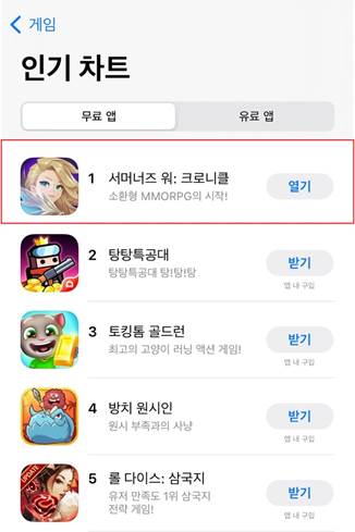 컴투스는 소환형 MMORPG <서머너즈 워: 크로니클>의 사전 다운로드를 실시한 지난 15일, 애플 앱스토어 인기 순위 1위에 올랐다고 밝혔다.