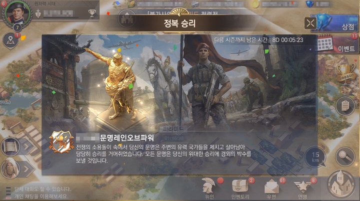 유저가 자신만의 문명을 발전시키는 재미도 있지만, 연맹과 함께 달성하는 승리의 기쁨은 게임의 또 다른 흥미를 제공한다. 이를 구현하기 위해 <문명: 레인 오브 파워>는 시즌제 콘텐츠를 도입했다.