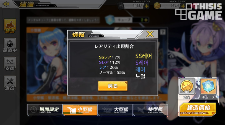 이 게임에서 제조는 <소녀전선>과 유사하게 캐시 대신 특정 자원(자금과 큐브)을 넣고, 일정 시간이 지난 뒤 무작위로 얻는 방식이다. 가장 높은 등급(SS레어)의 캐릭터를 뽑을 확률은 7%. 단기간 대량 생산이 아니라면, 무과금으로도 모은 자원을 활용해 캐릭터를 생산할 수 있다. 자원은 미션이나 이벤트, 자동 생산 등을 통해 일정 수준 얻을 수 있다.