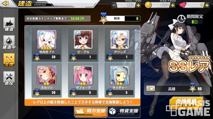 여기에 캐릭터 제조에 필요한 자원 종류를 '자금'과 '큐브', 단 2개로 압축시켜(유사 게임의 경우 4개) 자원 수급의 부담과 복잡함을 단순하게 만들었다. 더불어 기존 유사 게임들과 달리 들어가는 재료의 수량을 임의로 정하지 않고 자체적으로 고정시켰다. 투입할 재료 수량에 대한 고민을 하지 않아도 된다. 소형함(구축, 순양함 등), 대형함(순양, 전함 등), 특형함(항공모함 등)으로 건조 시스템이 구분되어, 원하는 함종 뽑기가 조금 더 유리하다.